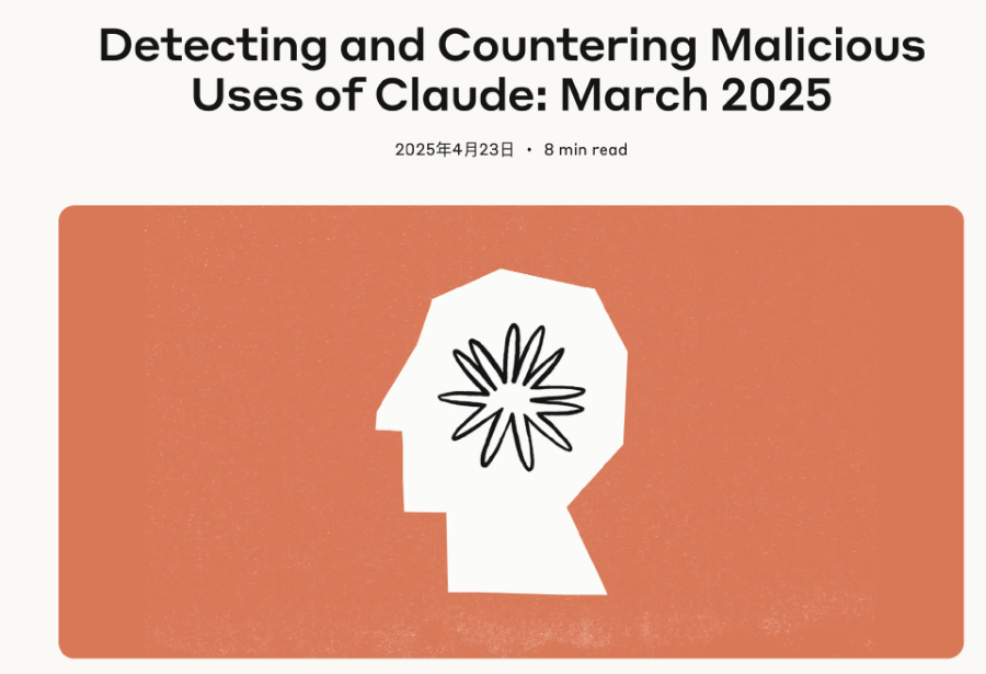4月23日,美国公司Anthropic发布了《检测并打击 Claude 的恶意使用》博文,称Claude 等前沿 AI 模型正被恶意行为者滥用,涉及“舆论引导服务”(influence-as-a-service)操作、凭证填充、招聘诈骗及恶意软件开发等活动。