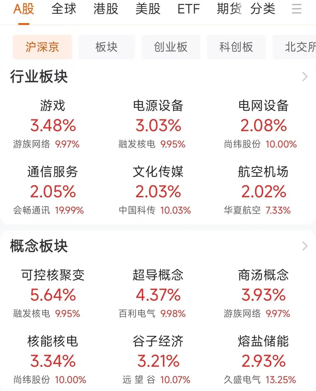 周一游戏板块也表现强势,游族网络涨停,冰川网络、电魂网络涨超7%,盛天网络、富春股份、姚记科技、星辉娱乐、巨人网络也涨幅靠前。