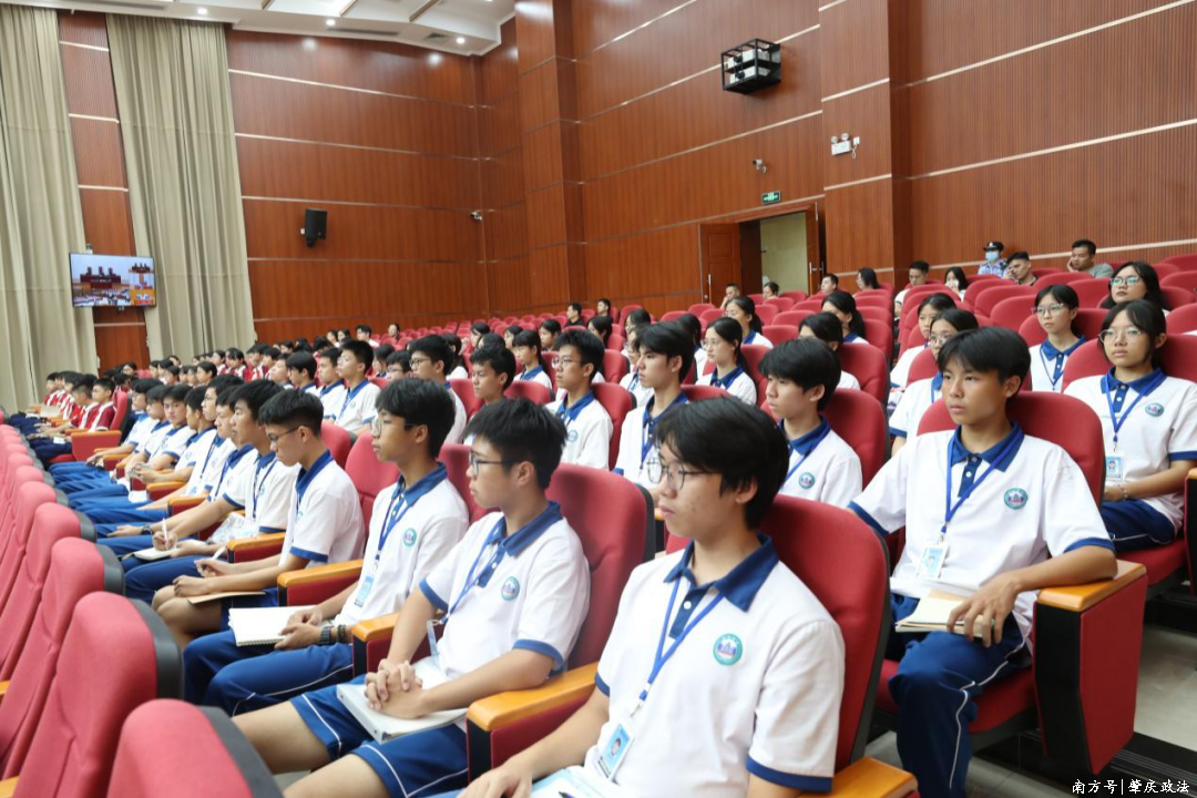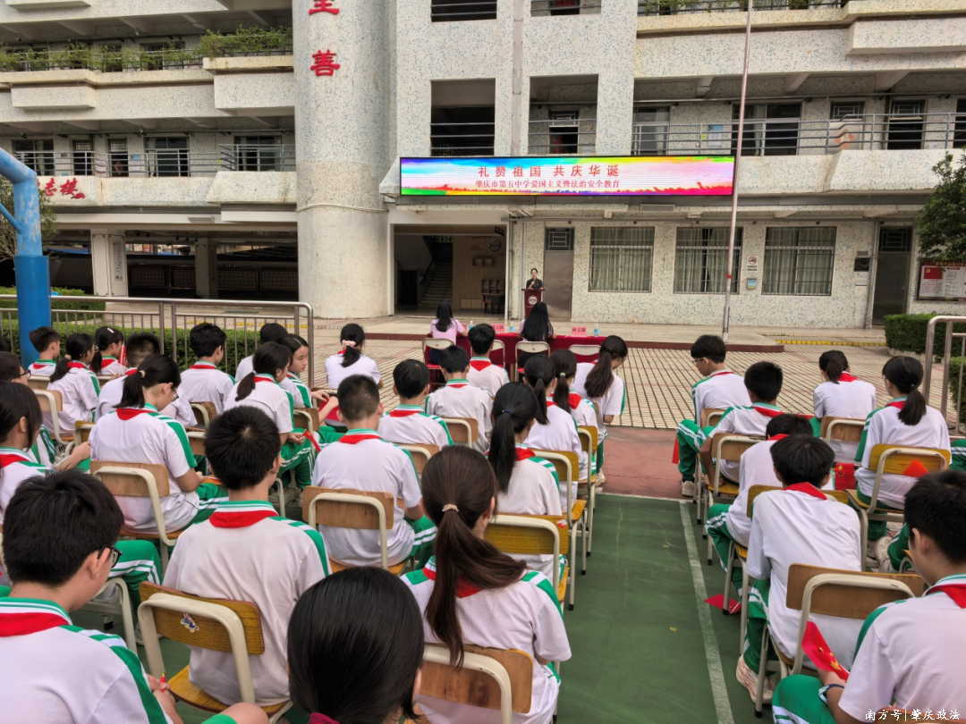 近日,端州法院法官助理何玉梅作为法治辅导员走进肇庆市第五中学,为1200余名学生上一堂法治安全教育课。