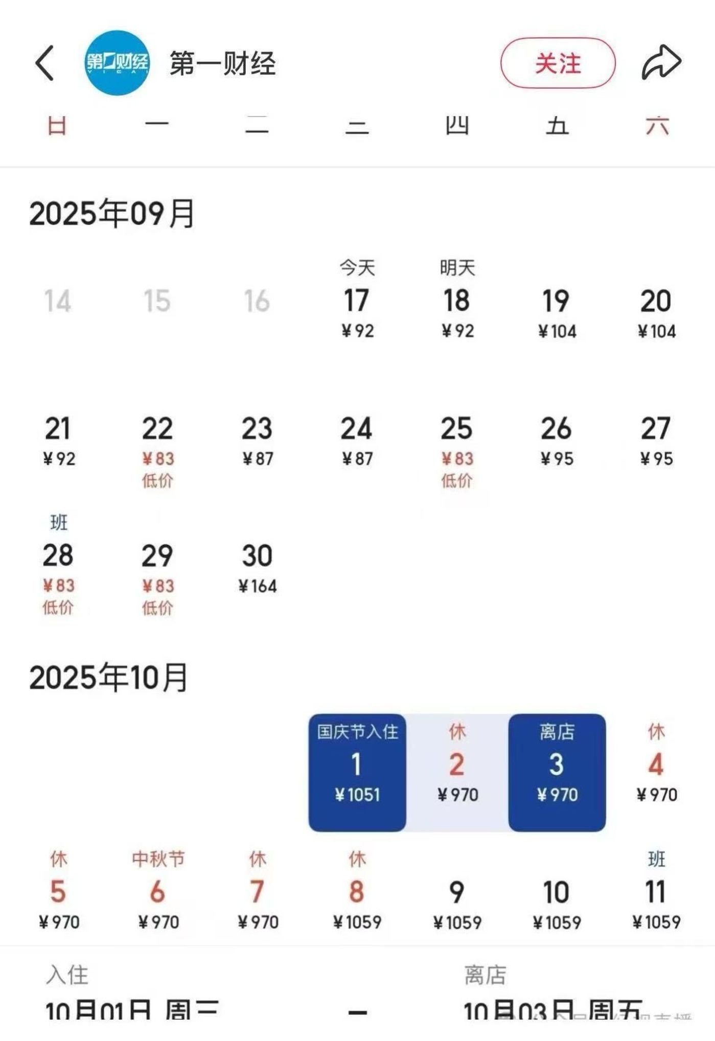从景德镇到阿尔山,从北京到上海,这种定价策略的剧烈分化,正勾勒出2025年国庆中秋假期酒店市场的独特图景。经济型酒店频现千元高价,高星酒店反而保持理性涨幅,让“冷热不均”成为这个假期最鲜明的市场注脚。